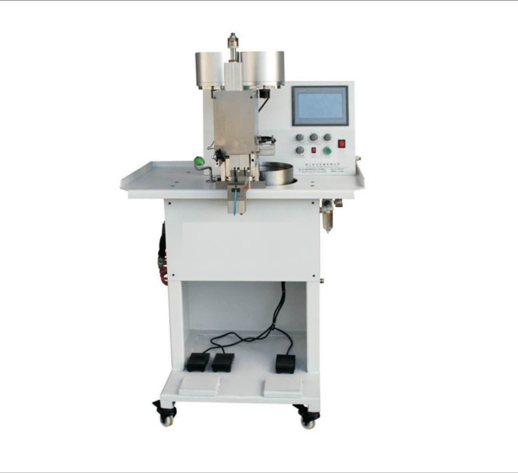 自动双色钉珠机用于圆形珍珠和四爪钉的铆合。适用于服装、帽子、皮鞋、皮包、饰品等行业的装饰图案加工,可同时加工两种颜色且大小不同的珍珠,排列顺序由电脑设定,图案美观、新颖。